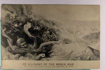 Lot #947. View Larger | Rotate Post W.W. I, U.S. Pub., “An Allegory of the World War”, Art. Sig. Lieut. CE Ruttan DB VF