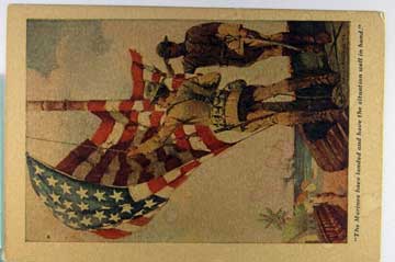 Lot #1093. View Larger | Rotate W.W. I, U.S. Pub. w/ Non P.C. Recruitment Back, Art. Sig., “Marines Have Landed”, Dated 1913 m cor wear & sts Near F-VF