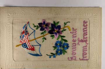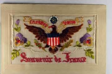 Lot #1142. View Larger | Rotate W.W. I, French Novelty Embroidered Silk w/ American Crest DB m cor wear Near VF