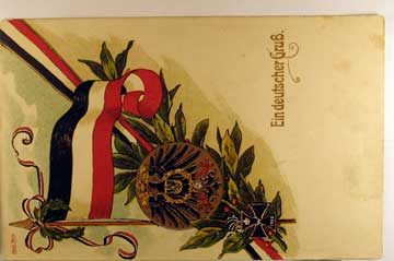 Lot #996. View Larger | Rotate W.W. I German Patriotic w/ Flag and New Year Greeting, 1914-15 Weltkrieg ser., used 1916 w/ Feldpost and Purple Markings VF