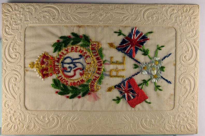 Lot #975. View Larger | Rotate W.W. I, French Pub., Novelty Embroidered Silk, “Royal Engineers” DB m edge cr Near VF