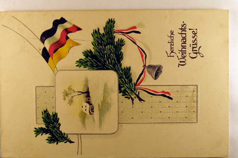 Lot #997. View Larger | Rotate W.W. I German Patriotic w/ Christmas Greeting, used 1916 w/ Feldpost Cancel emb m cor cr near VF