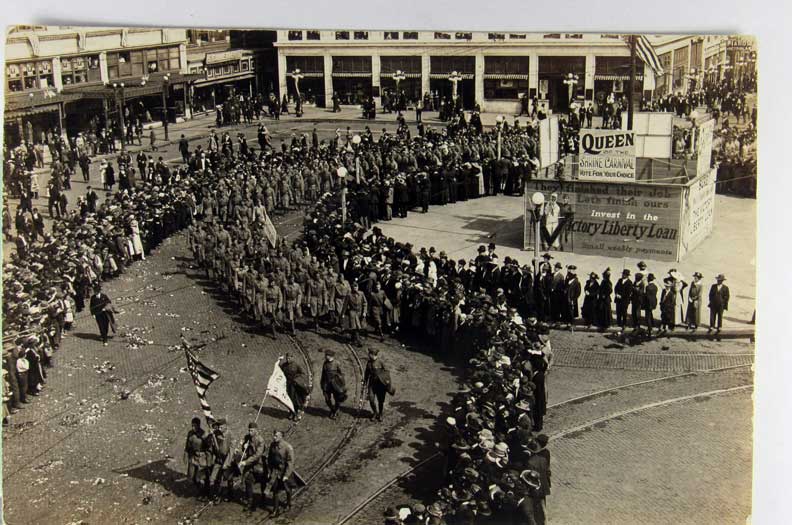 Lot #1092. View Larger | Rotate W.W. I, U.S. Real Photo w/ AZO P.C. back, Homecoming Parade m edge cr & m cor wear Near VF
