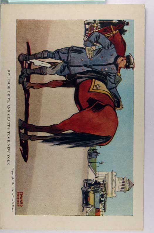 Card # 178732. View Larger | Rotate Adv. Hart Schaffner & Marx, Art. Sig. Edward Penfield, “Riverside Drive and Grant’s Tomb”, New York DB VF