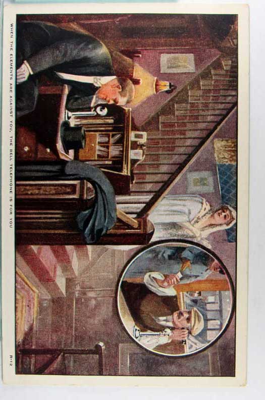 Card # 169141. View Larger | Rotate Adv. Bell Telephone ser., # R-12, “Elements Are Against You” DB Near VF