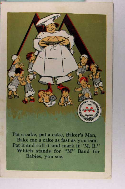 Card # 169446. View Larger | Rotate Adv. Minneapolis Knitting Works, Nursery Rhyme ser., “Pat a Cake --” DB near VF