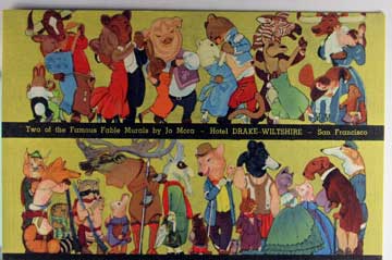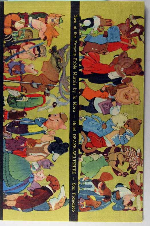 Card # 150080. View Larger | Rotate Adv. Hotel Drake - Wiltshire w/ Fantasy Fable Restaurant Mural by Jo Mora, California, San Francisco L VF