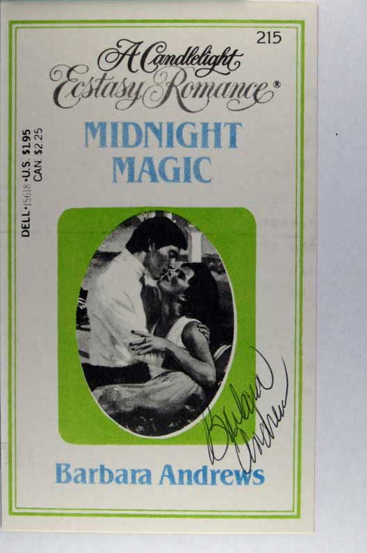 Card # 193365. View Larger | Rotate Adv. Romance Novel “Midnight Magic” by Barbara Andrews w/ Autograph VF