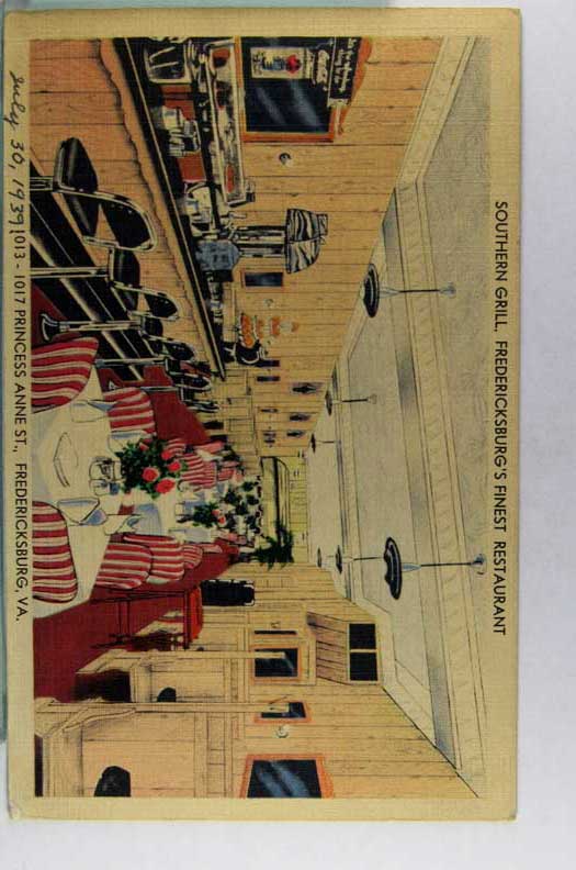 Card # 193864. View Larger | Rotate Adv. Southern Grill Restaurant, Fredericksburg, Virginia L m wof Near VF