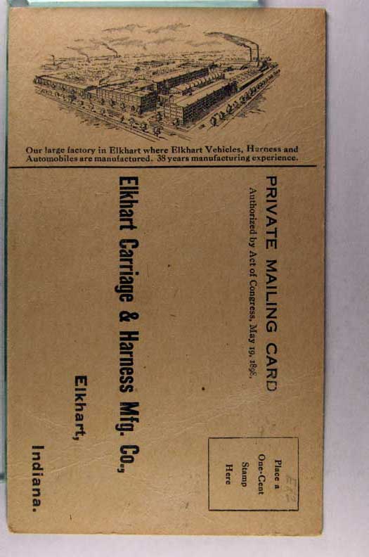 Card # 162592. View Larger | Rotate Adv. Elkart Carriage & Harness Mfg. Co. PMC crs Near F-VF