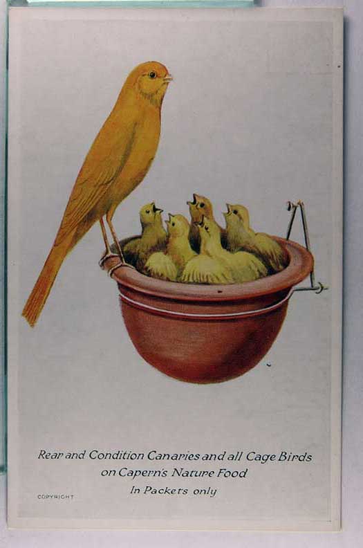 Card # 162724. View Larger | Rotate Adv. Capern’s Bird Food, “Rear and Condition Canaries” DB VF