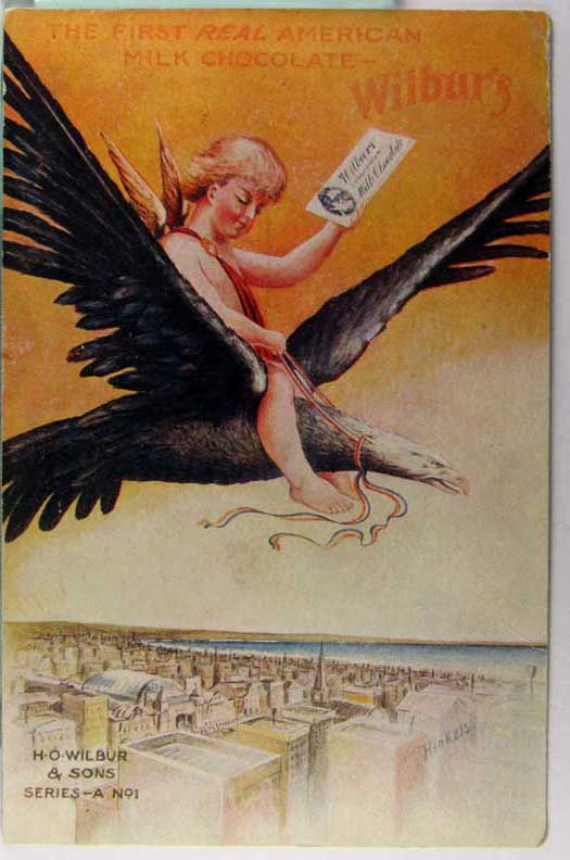 Card # 183420. View Larger | Rotate Adv. Wilbur’s American Milk Chocolate, U.S. Pub. UB m cor wear & cr F-VF