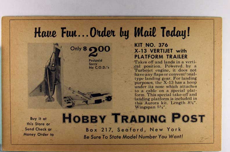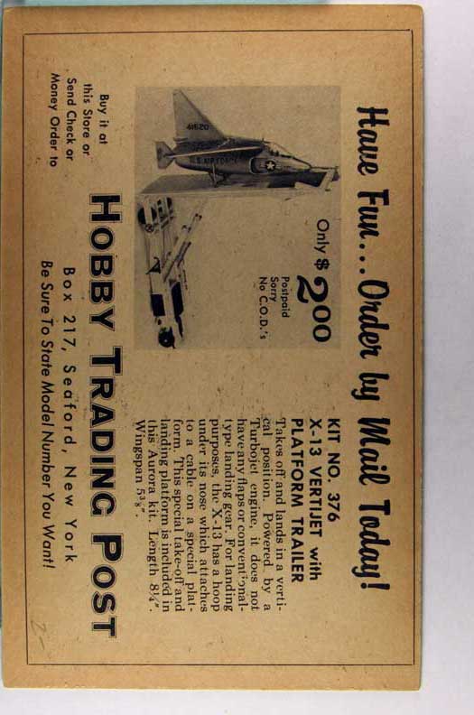 Card # 195189. View Larger | Rotate Adv. Hobby Trading Post w/ “Vertijet” Toy, on back of Arcade Card VF