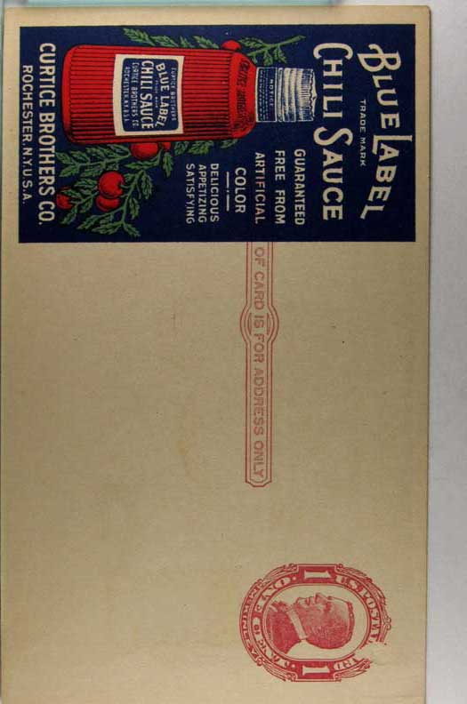 Card # 175143. View Larger | Rotate Adv. Blue Label Chili Sauce, Multi-Color on U.S. Gov’t Postal m thin Near VF