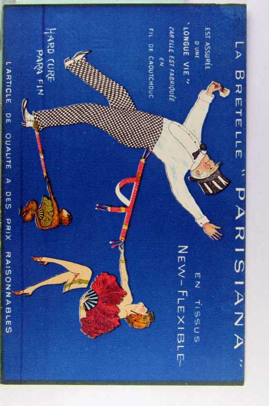 Card # 154683. View Larger | Rotate Adv. La Bretelle Parisiana New Flexible Suspenders, very nice DB Near VF
