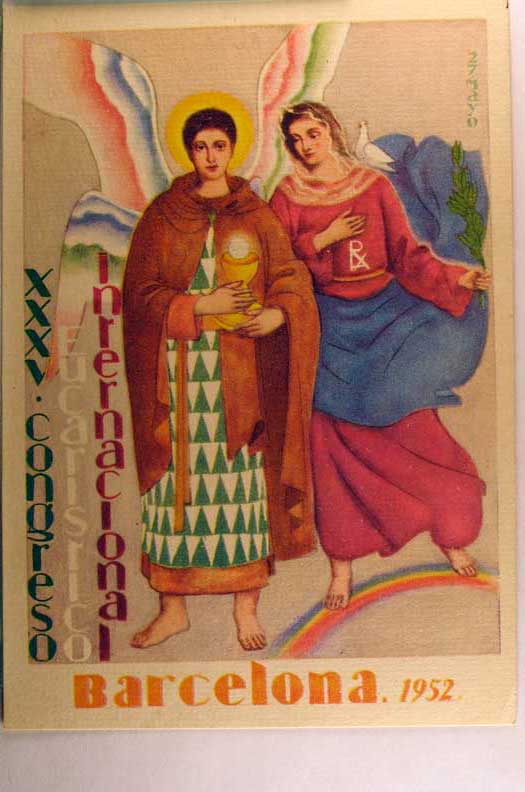 Card # 59160. View Larger | Rotate Poster Adv. Barcelona XXXV Congress Eucaristrico Int., 1952, very nice m cor cr VF
