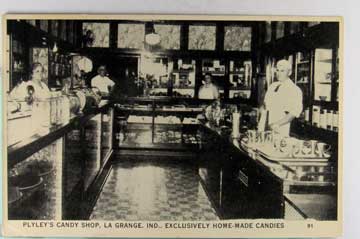 Card # 158979. View Larger | Rotate Adv. Plyley’s Candy Shop, LaGrange, Indiana, Printed Photo DB m cor cr F-VF