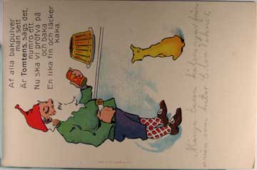 Card # 148615. View Larger | Rotate Adv. Tomtens Baking Powder w/ Fantasy Elf, Swedish Pub. m wof F-VF
