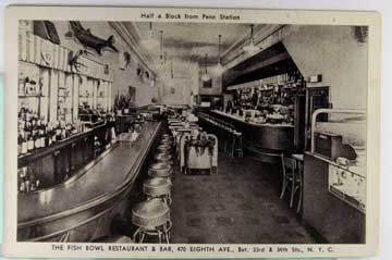 Card # 159297. View Larger | Rotate Adv. Fish Bowl Restaurant, Printed Photo, New York City WB m cor flt F-VF