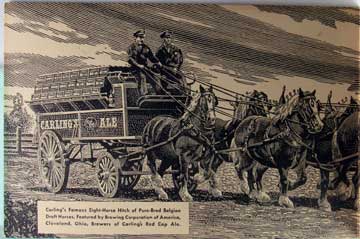 Card # 150472. View Larger | Rotate Adv. Carling’s Red Cap Ale, Double Card, “Carling’s Famous Eight-Horse Hitch” m hinge wear VF