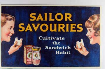 Card # 161604. View Larger | Rotate Adv. Sailor Savouries Seafood Sandwich Spread, British Published, Great w/ Blue Ink! VF