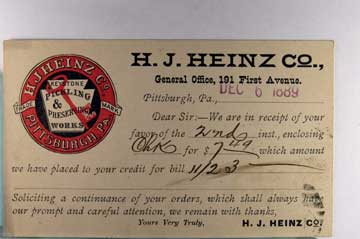 Card # 195009. View Larger | Rotate Adv. Heinz Pickling & Preserving, Pittsburgh, Pennsylvania, Multi-Color on U.S. Gov’t Postal, Used 1889