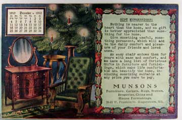 Card # 195200. View Larger | Rotate Adv. Muson’s Furniture, Hagerstown, Maryland, w/ 1910 Calendar UB VF