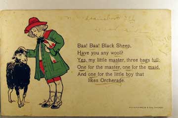 Card # 44634. View Larger | Rotate Adv. Beverage Orcherade, “Baa! Baa! Black Sheep-”, used 1910 DB m crs & wof