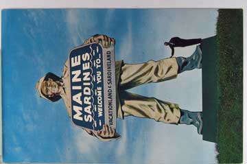 Card # 106927. View Larger | Rotate Huge Sign Adv. Maine Sardines, Welcome To Sardineland, used 1963 Brunswick, Maine C VF