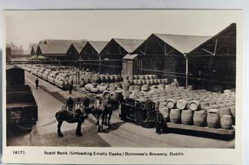 Card # 109486. View Larger | Rotate Guinness’s Brewery, Dublin, Ireland Real Photo Ser., Unloading Empty Casks DB VF