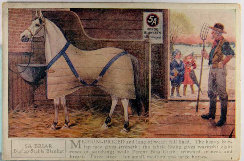 Card # 189783. View Larger | Rotate Adv. 5A Horse Blankets, “Are the Strongest Wear the Longest” DB m cor wear & m cor cr F-VF