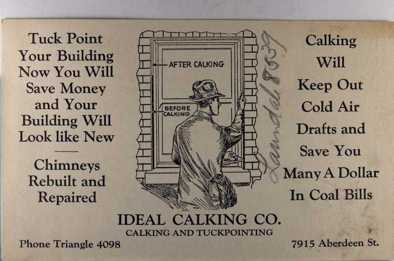 Card # 190974. View Larger | Rotate Adv. Ideal Calking Co., w/ Non P.C. back m wof F-VF