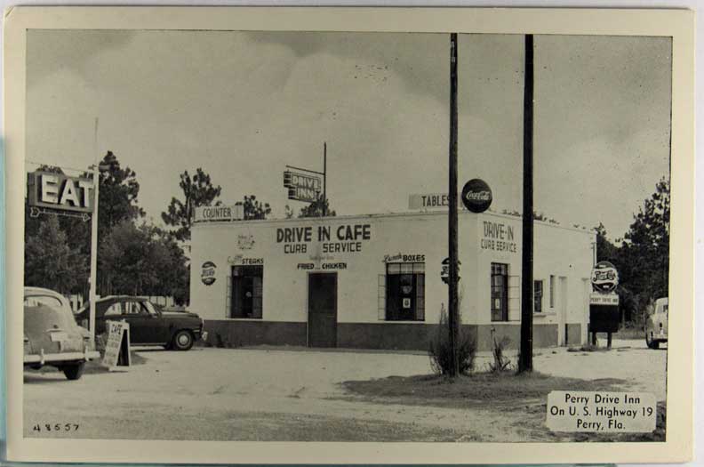 Card # 194732. View Larger | Rotate Adv. Perry Drive In Cafe w/ Coca Cola Sign, Printed Photo VF