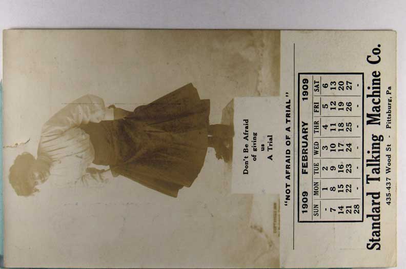 Card # 195914. View Larger | Rotate Adv. Standard Talking Macine Co., Pittsburgh, Pennsylvania, Real Photo w/ 1909 Calendar DB edge tear Near F-VF