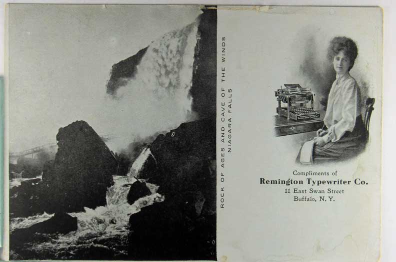 Card # 144195. View Larger | Rotate Adv. Remington Typewriter Co., Buffalo, New York, w/ Niagara Falls View, B&W UB edge flts