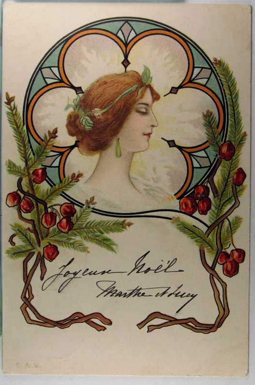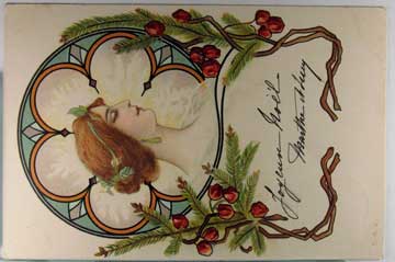 Card # 163646. View Larger | Rotate Art Nouveau Art Card, EAW Pub., Christmas, Used 12/24 1902 UB m pwof & m cor cr Near VF