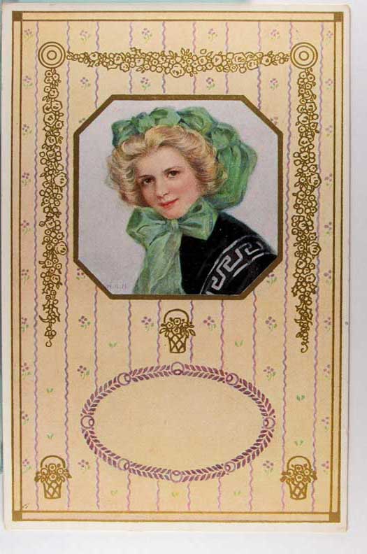 Card # 132492. View Larger | Rotate Art Nouveau, Lady w/ Heart, Art. Sig. UB m cor album marks VF