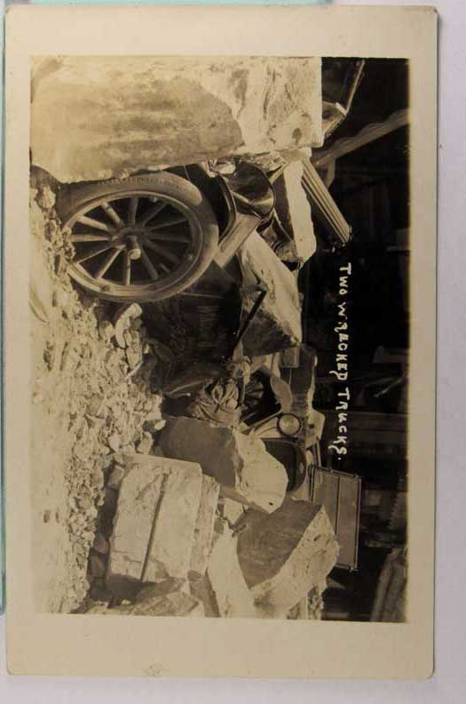 Card # 182272. View Larger | Rotate Auto Wreck, Real Photo w/ AZO P.C. back, After Earthquake? VF