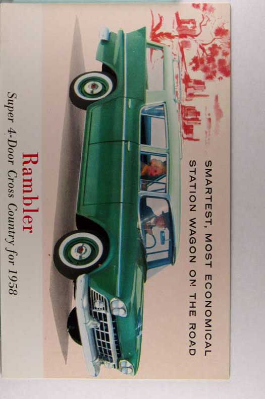 Card # 196325. View Larger | Rotate Adv. 1958 Rambler 4-Door Cross Country Station Wagon Pre Zip-Code C VF