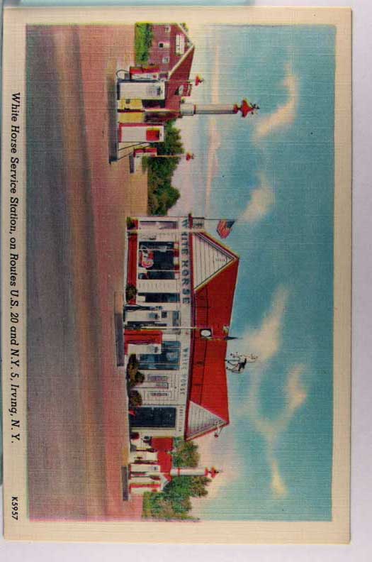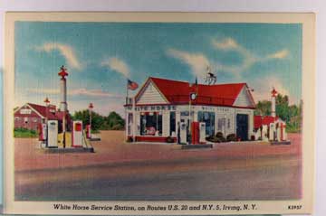 Card # 196505. View Larger | Rotate Adv. White Horse Service Station, Irving, New York L VF