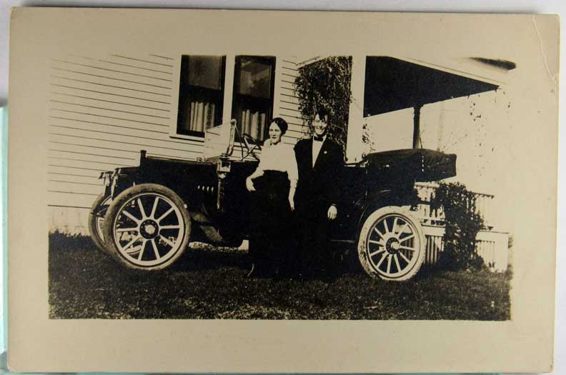 Card # 157377. View Larger | Rotate Auto Travelers, “From New York to Nebraska... Geo Johnston & Family..”, Real Photo w/ AZO P.C. back m cor crs & m edge flt F-VF