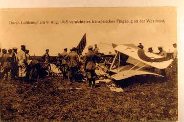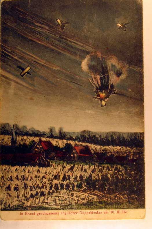 Card # 53226. View Larger | Rotate W.W. I German pub., Downed English Bi - Plane, In Brand, am 10.8.16 some creases F