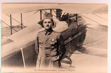 Card # 160014. View Larger | Rotate W.W. I, French Flying Ace, “Lietenant Hugues”, Photogravure DB edge cr F-VF