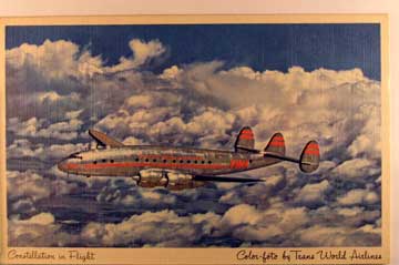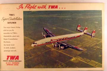 Card # 51385. View Larger | Rotate Adv. Trans World Airlines, Constellation in Flight L VF