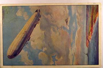 Card # 84065. View Larger | Rotate W.W. I German Military Aviation ser., Art. Sig. Schulze, w/ Zeppelin, used 1915 DB m cor wear & m cof F