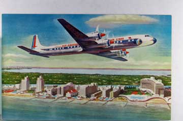 Card # 48045. View Larger | Rotate Adv. Eastern Airlines, Super-C Constellation Over Miami Beach C pinhole VF