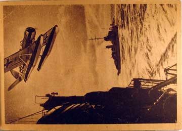 Card # 38502. View Larger | Rotate W.W. II German pub. Art Card, Ship Shooting Down British Planes, B&W some creases