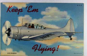 Card # 185681. View Larger | Rotate W.W. II, Keep ‘Em Flying Ser., Curt Teich Pub., “Dive Bomber” L VF