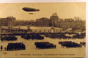 Card # 87764. View Larger | Rotate Airship in French Military Scene in Versailles, printed photogravure, used 1912 DB F-VF