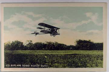 Card # 119621. View Larger | Rotate “U.S. Biplane Doing Scout Duty”, Tinted Printed Photo WB m cor wear F-VF